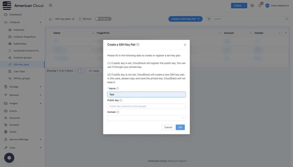Create a new keypair: ACE will generate a keypair and give you the private key.