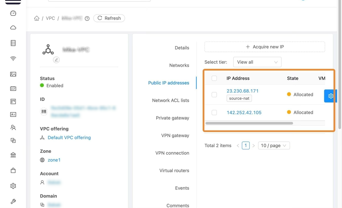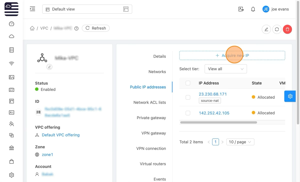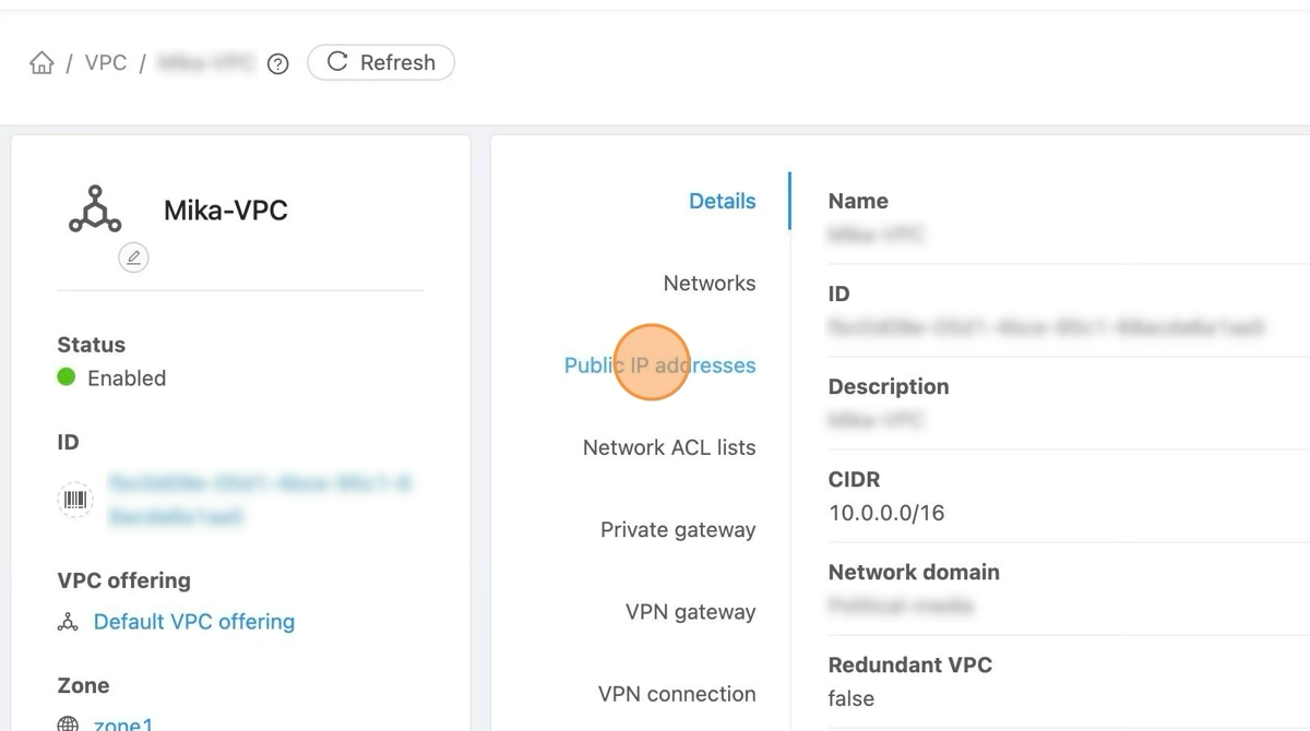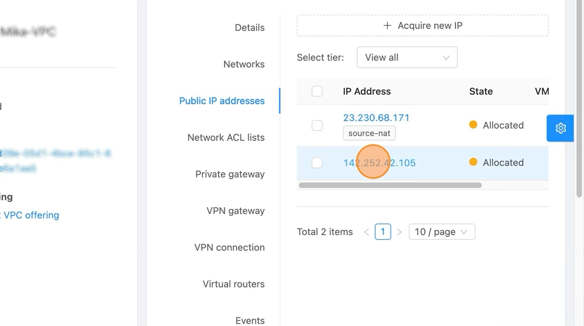 Click "Public IP addresses" to list the already allocated IP Addresses.