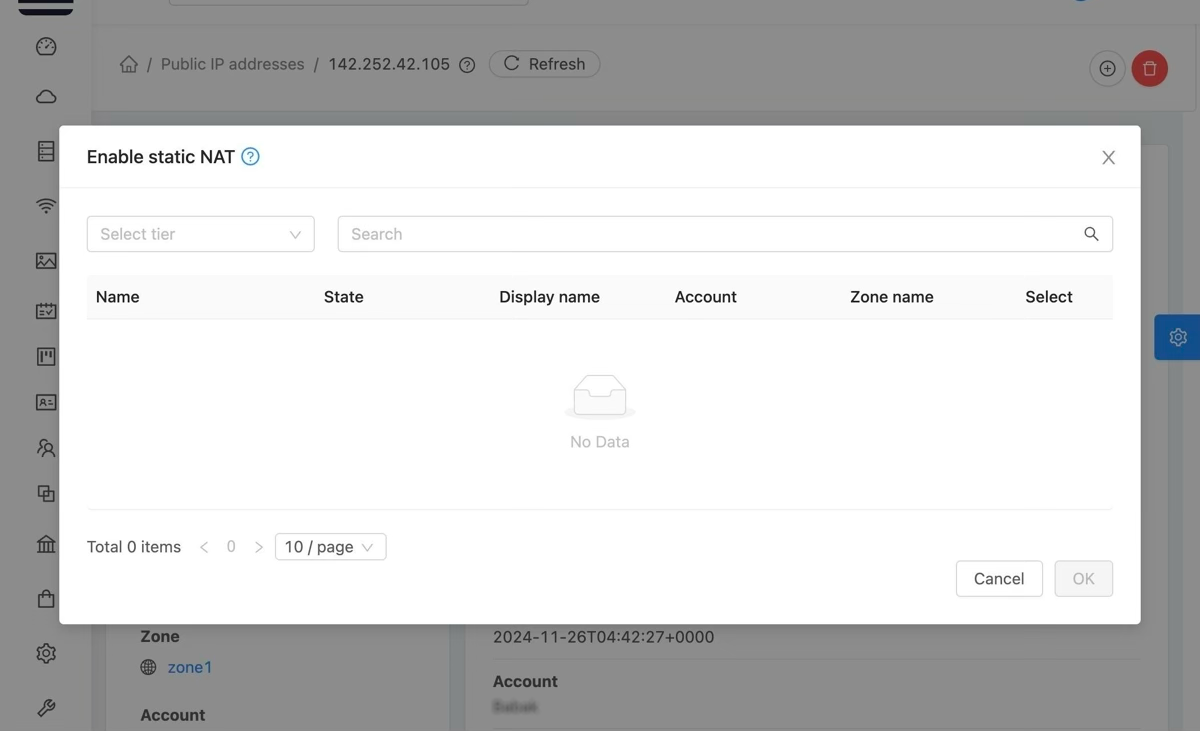 Once selected a list of currently running vm's will appear. Simply select the VM to enable static nat for.