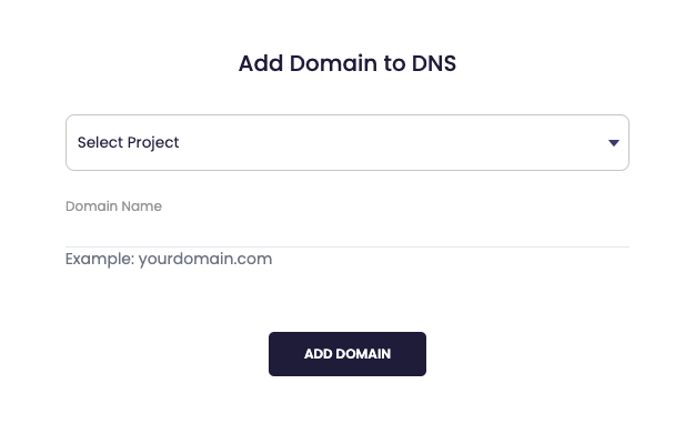 Select the Project and enter your domain name in the Domain Name field.