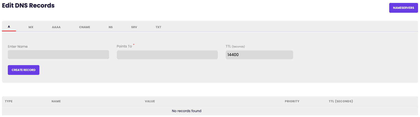 After clicking Add Domain you will be able to add the records to your domain.