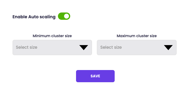 Toggle on "Enable Auto scaling" and Select the Minimum and Maximum cluster size.