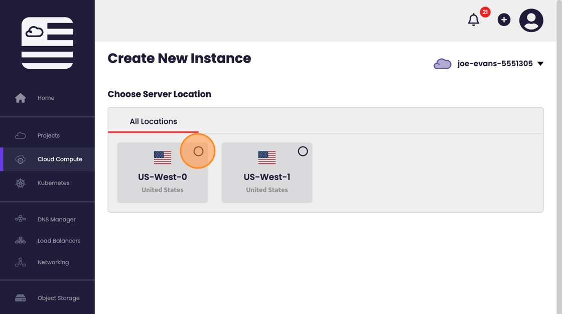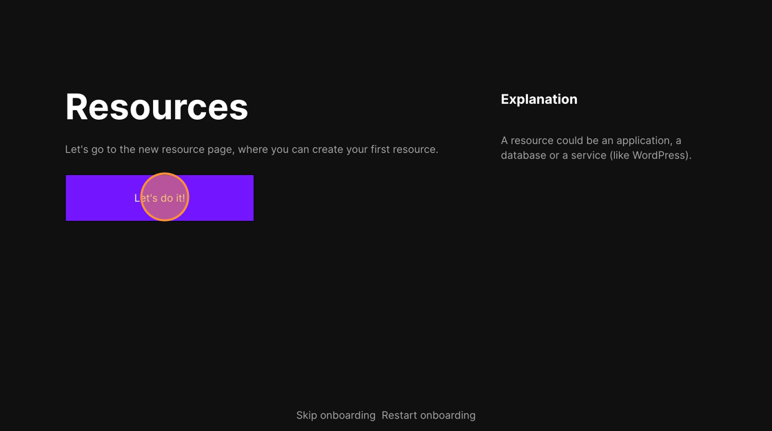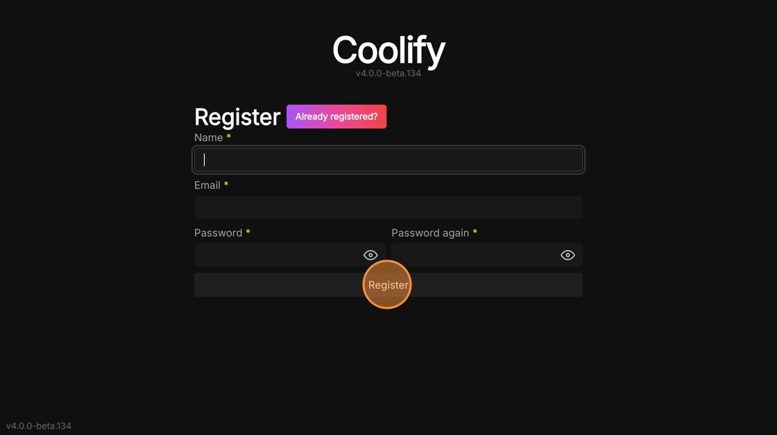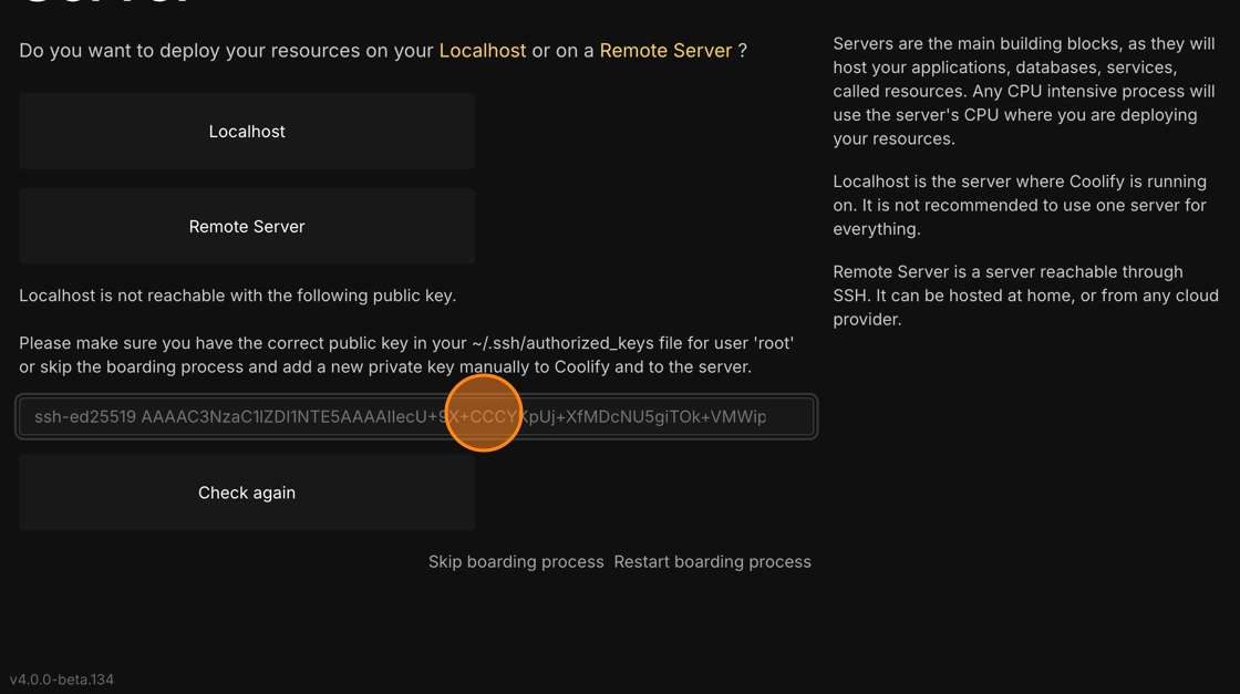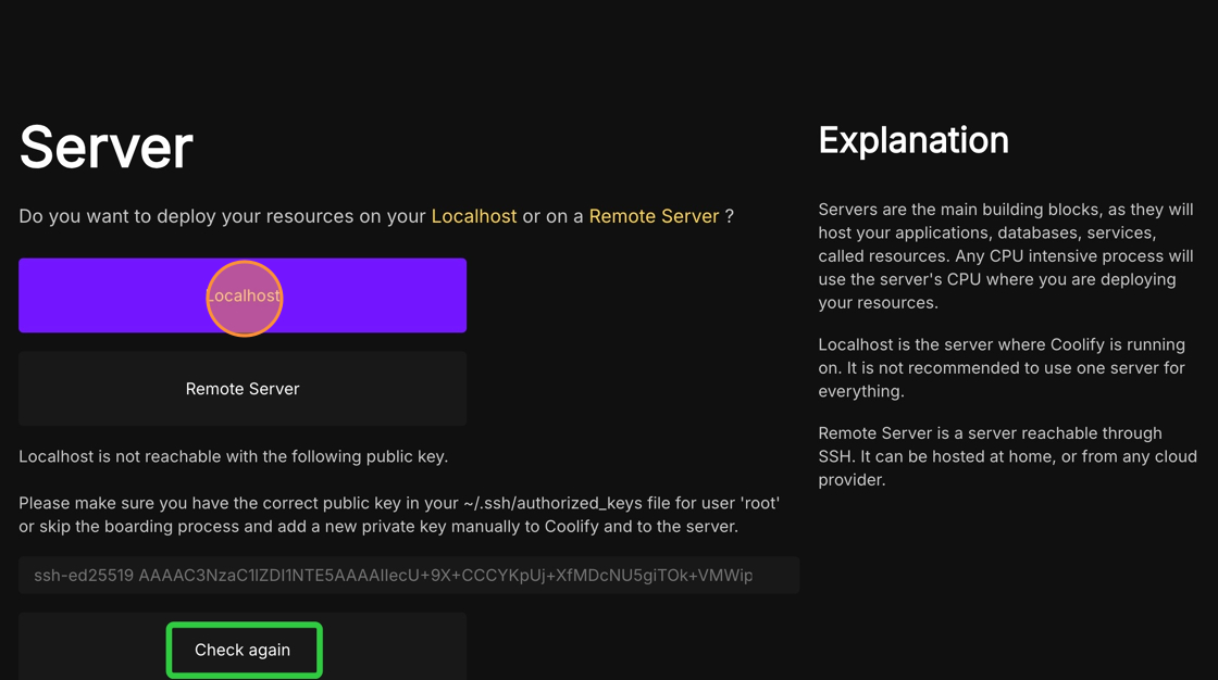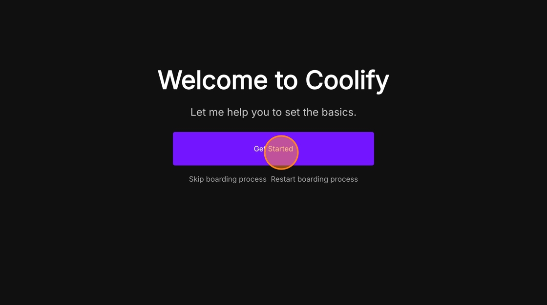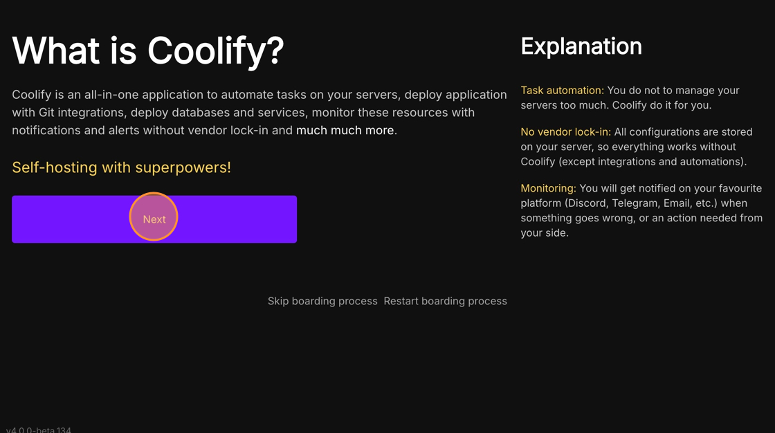 In a new tab, navigate to http://:8000 exchanging with the coolify machines IP address.