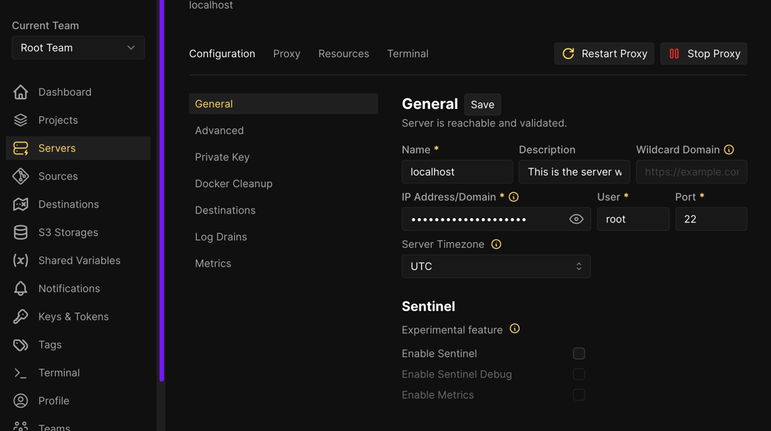 - The server is now validated and proxy is running. You're free to start creating projects and building resources.