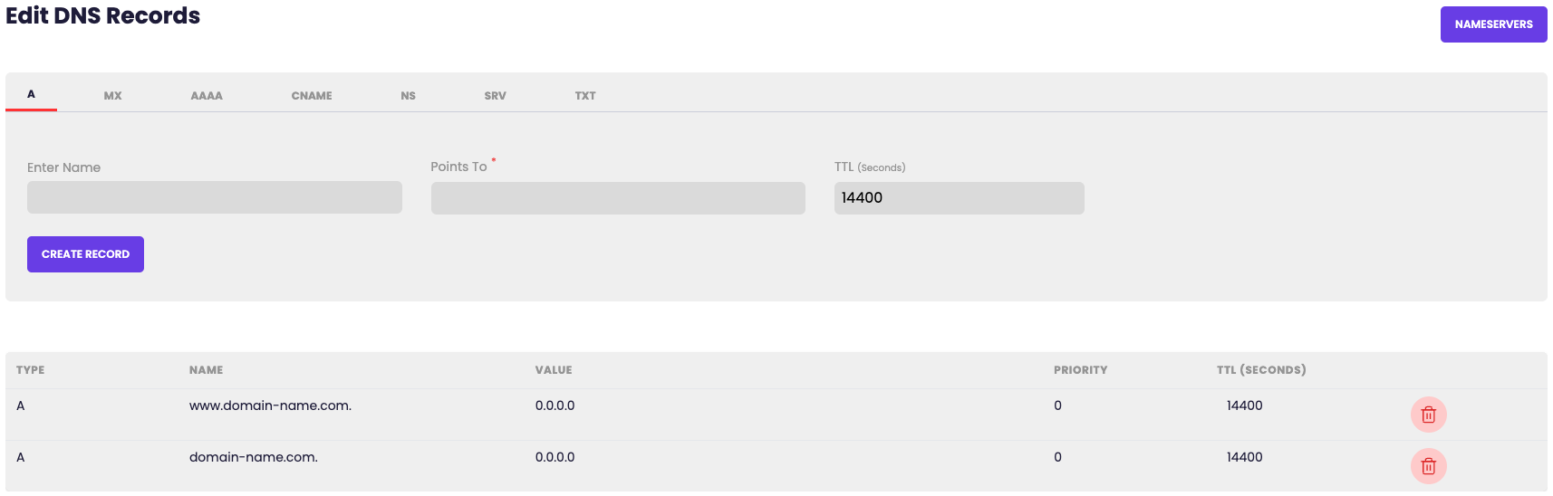 Note: DNS providers have different methods of doing this, please contact your DNS provider if you are having any issues