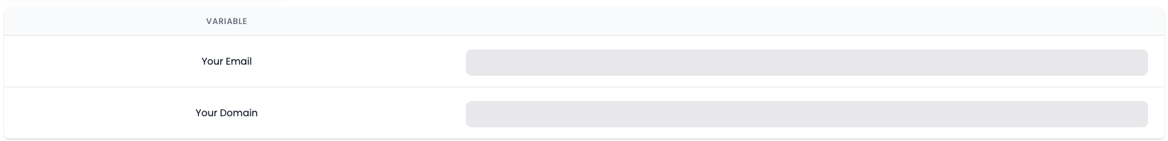 A section for Environment Variables will be displayed. Fill in the following information.
