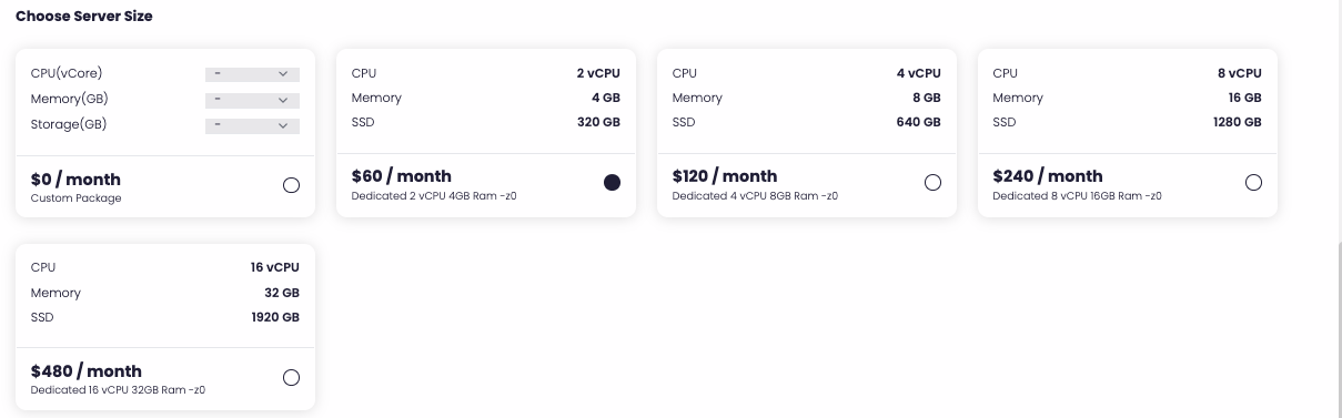 Choose a server size.