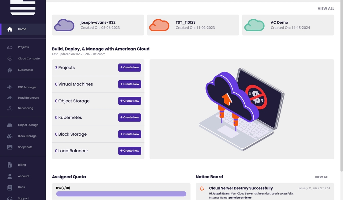 - Navigate to https://app.americancloud.com
