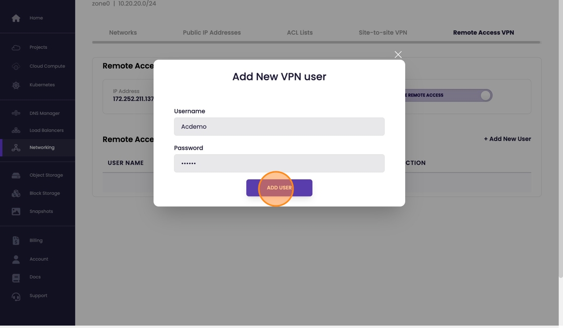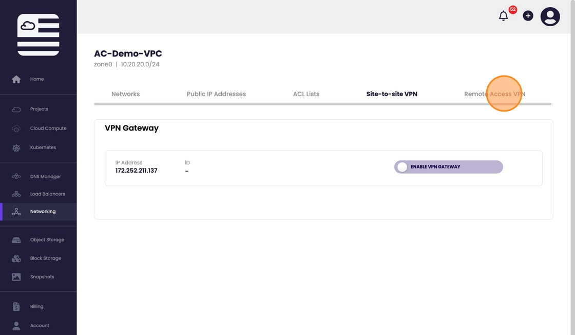 From the top menu select "Remote Access VPN"