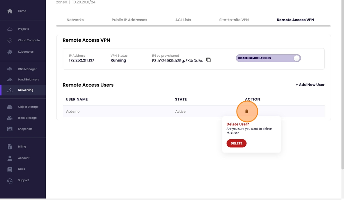 - If that user is no longer needed. Remove it by selecting the trashcan icon associated with the user and select delete in the warning/last chance block.