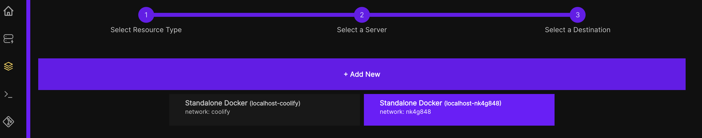 Create the MySQL resource within Coolify by selecting the project for the resource. The default 'My first project' is utilized for the document.