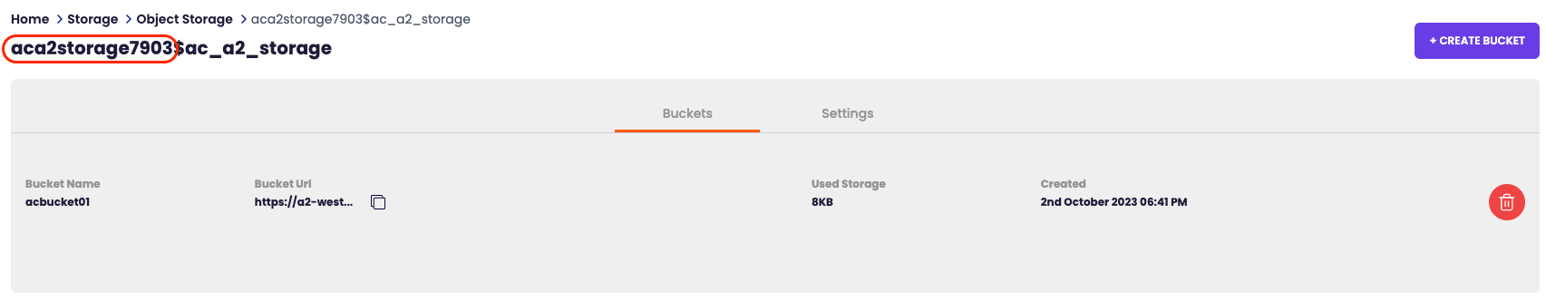 Copy the bucket URL the only thing needed will be the "region.americancloud.com" for the endpoint